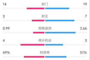 全場比賽數(shù)據(jù)如下(利物浦在后):