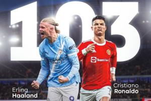 哈蘭德在英超聯(lián)賽中用114場(chǎng)比賽就打入了104球,在英超進(jìn)球數(shù)上正式超越了C羅的103球(236場(chǎng))!