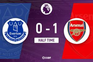 半場-阿森納1-0埃弗頓 奧布萊恩手球送點(diǎn)約克雷斯點(diǎn)射建功