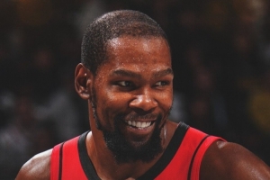 賽后火箭官方曬出本場贏球海報,封面人物是杜蘭特。