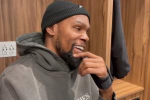 杜蘭特笑著回答說:“我猜不到啊,可能他會像他兒子一樣,對我瘋狂犯規(guī)吧哈哈哈哈。”
