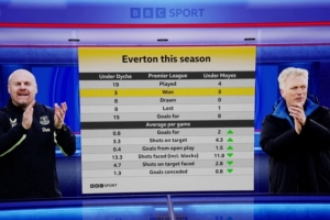 體育資訊2月2日訊 英超第24輪比賽,埃弗頓主場4-0完勝萊斯特城。據(jù)BBC統(tǒng)計,莫耶斯上任以來埃弗頓3勝1負(fù),場均進(jìn)球、失球等多項數(shù)據(jù)均優(yōu)于戴奇執(zhí)教期間。