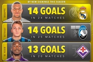 體育資訊12月26日訊?Score90統(tǒng)計(jì)表明,姆巴佩是2024-25賽季進(jìn)球最多的新轉(zhuǎn)會(huì)球員。
