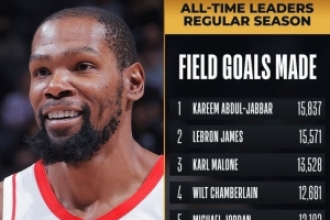 本場(chǎng)比賽,杜蘭特生涯運(yùn)動(dòng)戰(zhàn)進(jìn)球數(shù)超過(guò)奧拉朱旺(10749),升至歷史第10位。
