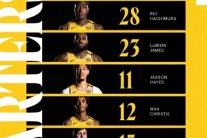 值得一提的是,本賽季湖人擺出這套首發(fā)還沒輸過,戰(zhàn)績?yōu)?勝0負(fù)。