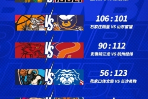 NBL常規(guī)賽第三輪今日戰(zhàn)罷,石家莊翔藍(lán)106-101險(xiǎn)勝山東蜜獾,安徽皖江龍90-112不敵杭州經(jīng)緯,張家口體文旅56-123不敵長沙勇勝。