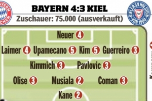 體育資訊2月2日訊 拜仁在本輪德甲4-3擊敗基爾,《圖片報》對拜仁進行了賽后評分,金玟哉和于帕這對中衛(wèi)組合雙雙獲得最低評分。