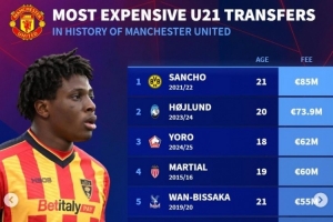 體育資訊2月2日訊 曼聯(lián)已經(jīng)官宣從萊切引進(jìn)翼衛(wèi)多古,《轉(zhuǎn)會市場》也統(tǒng)計了曼聯(lián)隊史U21球員引援榜。