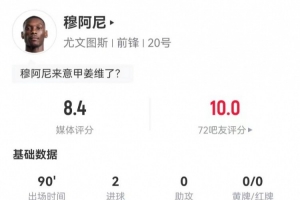 體育資訊2月2日訊 尤文在本輪意甲大勝恩波利,穆阿尼本場數(shù)據(jù)如下: