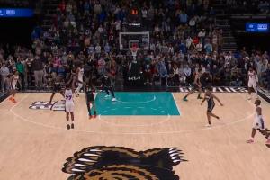 76人 灰熊加時最后時刻雙方打成136平,馬克西弧頂持球遭遇包夾,埃奇庫姆跑出空位,接球三分自信投出轟進(jìn)!完成絕殺!