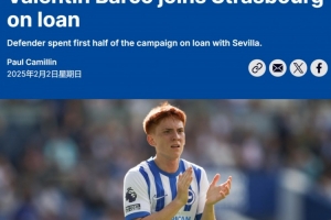 體育資訊2月2日訊 布萊頓官方宣布,阿根廷邊后衛(wèi)瓦倫丁-巴爾科外租斯特拉斯堡半個賽季。