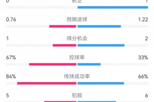 體育資訊2月2日訊 本輪英超,曼聯(lián)主場0-0半場戰(zhàn)平水晶宮。雙方半場重點(diǎn)數(shù)據(jù)對比如下↓(主隊(duì)曼聯(lián)在前,客隊(duì)水晶宮在后)