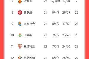 體育資訊02月02日訊 西甲第22輪,巴薩主場1-0小勝阿拉維斯,賽后西甲頭部積分榜形勢如下。