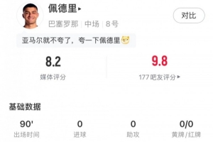 本場比賽佩德里為巴薩首發(fā)踢滿全場,并策動了全場比賽唯一進(jìn)球,賽后他獲評全場最高的8.2分。