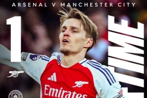 體育資訊2月3日訊 阿森納在本輪英超半場1-0領先曼城,厄德高為主隊閃擊建功。