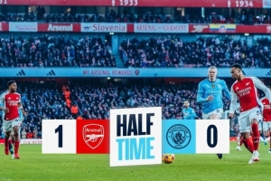 體育資訊2月3日訊 曼城在本輪英超焦點戰(zhàn)客場上半場0-1落后阿森納,厄德高首開記錄。