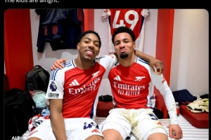 賽后,阿森納曬出兩人在更衣室里的合影,并寫道:孩子們都很好。