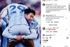 本場比賽孫興慜一次造烏龍還有一次助攻,賽后他也在個人社媒曬出與隊友相擁慶祝的照片,配文寫道:“一個艱難的客場面對一支出色的球隊,拿下三分,完成零封,這是我們?nèi)肯胍?,現(xiàn)在集中注意在聯(lián)賽杯半決賽?!?/p>
