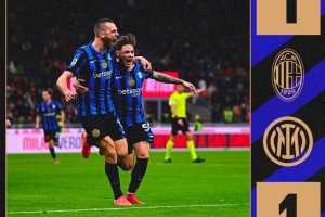 體育資訊2月3日訊 憑借德弗里的進(jìn)球,國(guó)米在本輪意甲1-1絕平米蘭。