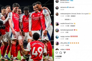賴斯也在賽后通過(guò)社媒曬出自己和隊(duì)友們圍觀小將斯凱利打坐慶祝的照片,并配文:“黑爾恩德。”