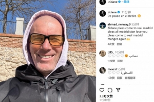 而皇馬名宿齊達內(nèi)則過得很是悠閑,他在今日通過社媒曬出自己的自拍照并配文:“漫步麗池公園?!丙惓毓珗@也是馬德里市區(qū)的知名景點。