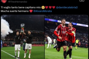 體育資訊2月3日訊 AC米蘭球員卡拉布里亞和莫拉塔都在今年冬窗離隊(duì),特奧也在個(gè)人社媒曬出昔日合影為前隊(duì)友告別。