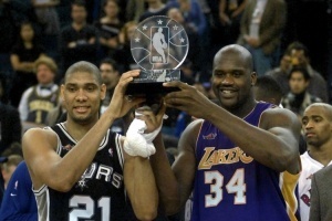 “控衛(wèi)我選魔術(shù)師,因為他有6尺9,不然我就選基德了,2號位是科比,魔術(shù)師能讓科比冷靜下來。4號位就是鄧肯和KG,KG我愛你,我必須選鄧肯。5號位是沙克,總是這樣?!?/p>
