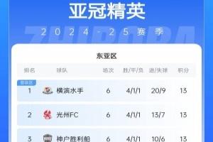 最新亞冠精英聯(lián)賽積分榜如下↓