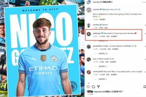 在尼科-岡薩雷斯和曼城官方的官宣動態(tài)下,巴薩中場加維進行了評論,向前隊友送上了祝福。