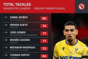 體育資訊2月4日訊 squawka統(tǒng)計(jì)了本賽季英超球員搶斷情況,水晶宮的右后衛(wèi)穆尼奧斯獨(dú)自領(lǐng)跑。