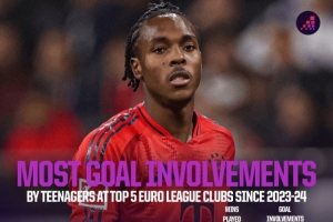 近2賽季五大聯(lián)賽U20球員參與進(jìn)球榜: