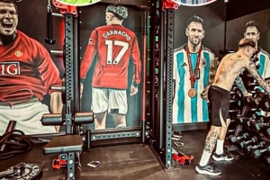 從曝光的照片可以看到,加納喬在C位放置的是自己身穿曼聯(lián)球衣的海報(bào),而左側(cè)是C羅在首次效力曼聯(lián)期間的海報(bào),右側(cè)則是梅西身穿阿根廷球衣贏得世界杯后的領(lǐng)獎(jiǎng)?wù)铡?/p>