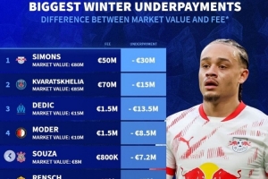 體育資訊2月5日訊 五大聯(lián)賽冬窗已經(jīng)結(jié)束,《轉(zhuǎn)會(huì)市場(chǎng)》也列出了冬窗折價(jià)引援榜,哈維-西蒙斯居首。