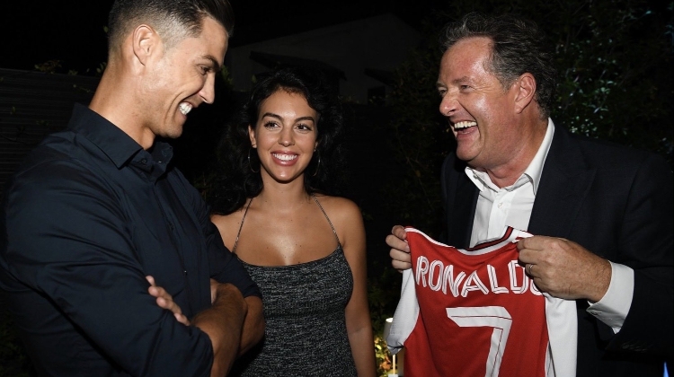摩根的配圖中,他手持C羅印號的阿森納球衣,C羅、喬治娜站在一旁。