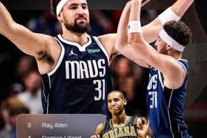 體育資訊12月27日訊?昨日NBA圣誕大戰(zhàn),獨(dú)行俠99-105不敵森林狼。在這場比賽中,克萊三分命中數(shù)超越雷吉-米勒,獨(dú)居歷史第五。