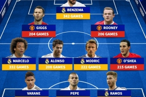 前鋒:吉格斯(204次)、本澤馬(342次)、魯尼(206次)