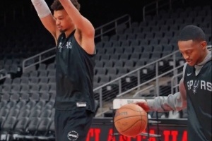 馬刺新援??怂购望溈藙诹郑顟B(tài)為出戰(zhàn)成疑)參加了球隊(duì)的訓(xùn)練,前者本場(chǎng)比賽將迎來新東家首秀。