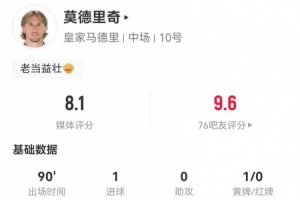 體育資訊2月6日訊 皇馬在本輪國王杯3-2絕殺萊加內(nèi)斯,莫德里奇本場數(shù)據(jù)如下: