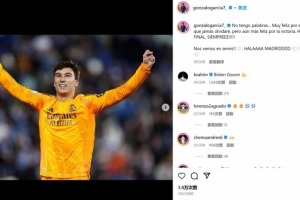 他也在賽后通過社媒曬出自己的慶祝照,并配文:“我高興到不知道該說什么了……我很高興能夠打進這粒永遠不會忘記的進球,但更高興的是取得勝利。永遠要戰(zhàn)斗到最后一刻!半決賽見!馬德里前進!”
