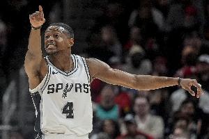本場(chǎng)比賽,馬刺新援??怂褂瓉?lái)首秀,他在37分鐘的時(shí)間里,投籃22中11,三分球7中2,拿下24分5籃板13助攻3搶斷。