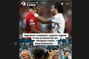 體育資訊2月6日訊 皇馬傳奇馬塞洛在今日官宣退役,阿拉巴也通過社媒送上祝福。