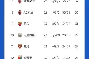 國米聯(lián)賽2輪不勝,積分榜上落后榜首那不勒斯3分。佛羅倫薩三連勝升至第四。