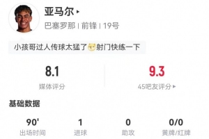 體育資訊2月7日訊 巴薩在本輪國王杯5-0大勝瓦倫,亞馬爾本場數(shù)據(jù)如下: