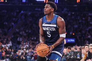 上半場(chǎng),森林狼核心愛(ài)德華茲頻頻造成殺傷,打了18分鐘8投4中,三分5中2、罰球11中11拿到半場(chǎng)最高21分外加2籃板3助攻,正負(fù)值-4。