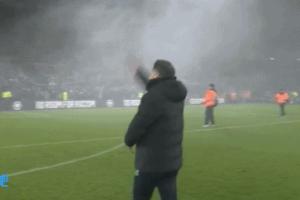 賽后狼隊(duì)主帥佩雷拉謝場(chǎng)時(shí)與球迷們激情互動(dòng),揮拳慶祝。