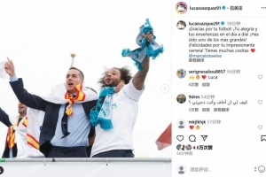 巴斯克斯社媒配文寫道:“感謝你的足球生涯,你每一天都帶來歡樂和教導(dǎo),你一直是最佳球員之一。祝賀你擁有如此令人印象深刻的生涯,你有無數(shù)閃光時刻?!?/p>
