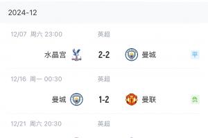 北京時間12月29日22:30,萊斯特城將對陣曼城。兩隊近4輪英超均難取一勝,曼城2平2負(fù),萊斯特城1平3負(fù)。