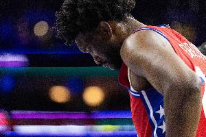 恩比德上半場(chǎng)攻不進(jìn)防不住9投1中僅得3分,第三節(jié)連續(xù)造殺傷轟下20分,末節(jié)1中0沒有得分。