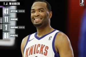 此役,TJ-沃倫出戰(zhàn)44分53秒,投籃23中14,三分13中7,罰球10中9,爆砍47分11籃板2助攻2搶斷1蓋帽,得分和三分命中數(shù)賽季新高。