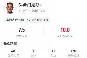 體育資訊2月9日訊 米蘭在本輪意甲2-0擊敗恩波利,新援S-希門尼斯本場(chǎng)數(shù)據(jù)如下: